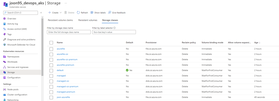 storageclass.storage.k8s.io/joon-azurefile created