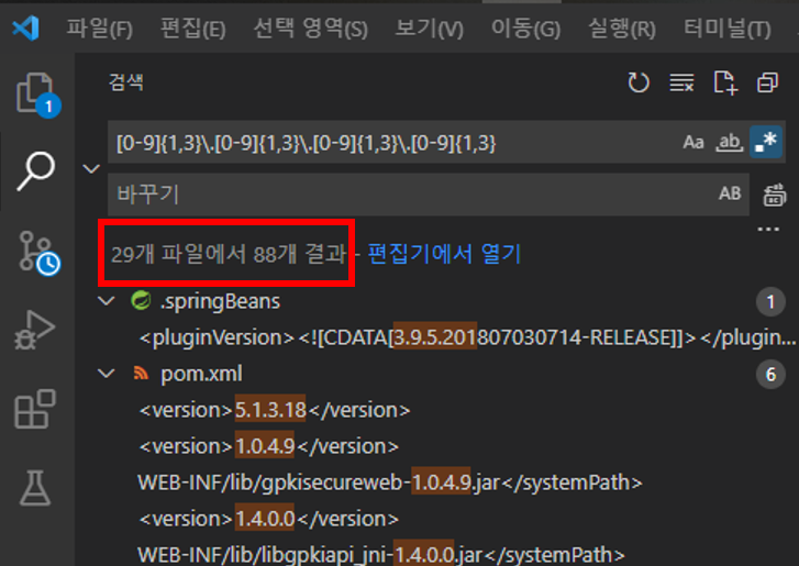 필자는 이번에 어플리케이션 이관 작업을 하는데 모든 파일에서 IP 를 찾으려고 했다.