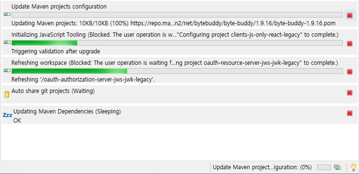 이 예제에는 총 3개의 application이 존재하는데 인증서버, 리소스서버, 클라이언트서버이다.