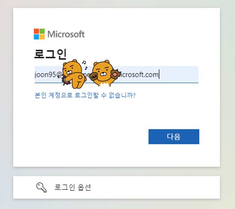 AAD 라는 로그인방식이 생겼고, 눌러보면 ms 로그인 페이지로 로그인된다.