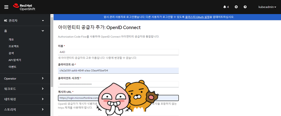 추가로 AAD에서 ocp callback URI 정보를 입력해줘야 되는데,
