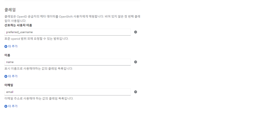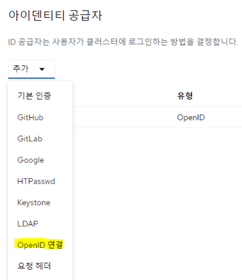 화면을 내려 아이덴티티 공급자에서 OpenID 연결을 눌러준다.
