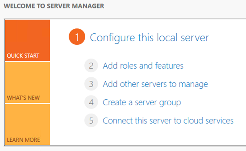 Server Manager > Dashboard > Quick START > 1 > 2. Add Role and features