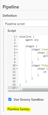 Pipeline syntax 라는 링크를 들어가