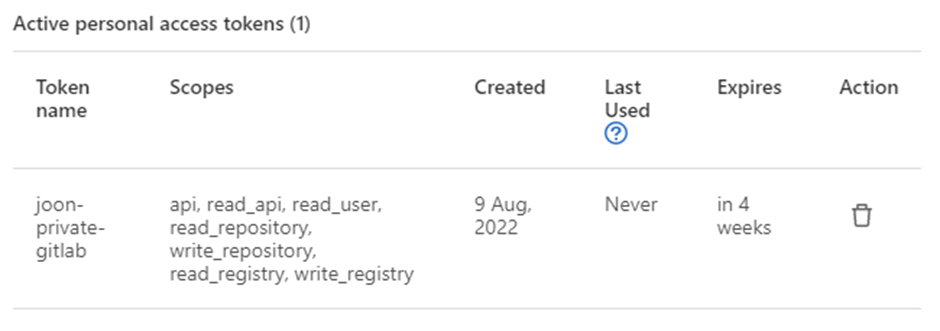 여기선 gitlab에서 발급한 access token을 사용하여 접근한다.