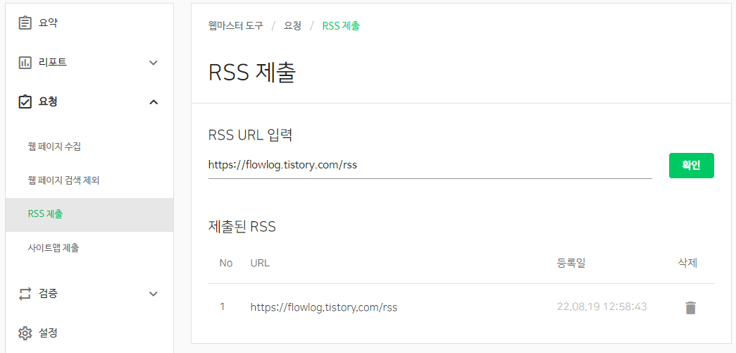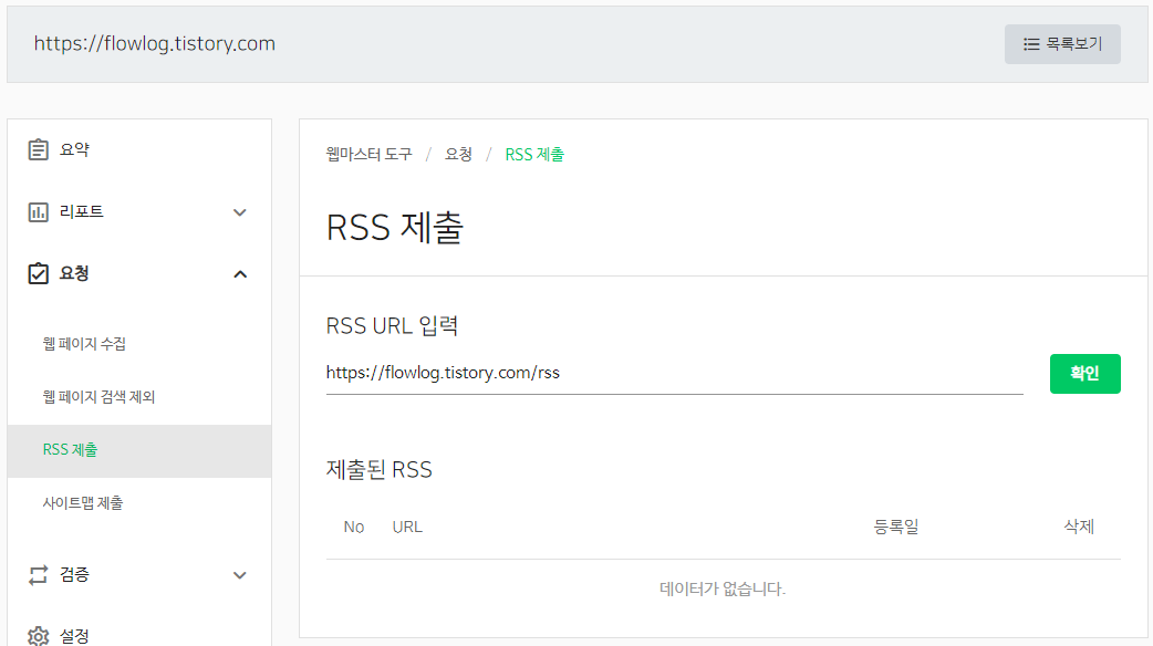 사이트 관리 > 요청 > RSS 제출