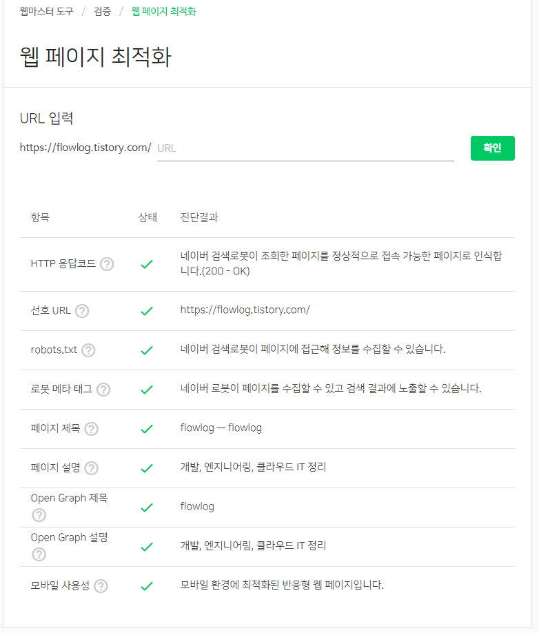 네이버웹마스터 > 검증 > 웹 페이지 최적화