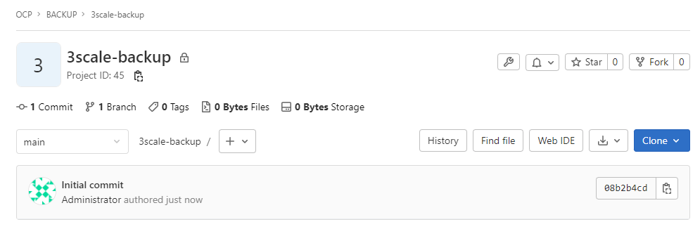 $ git clone https://git.apps.x6m10kjj.australiaeast.aroapp.io/ocp/bakcup/3scale-backup.git