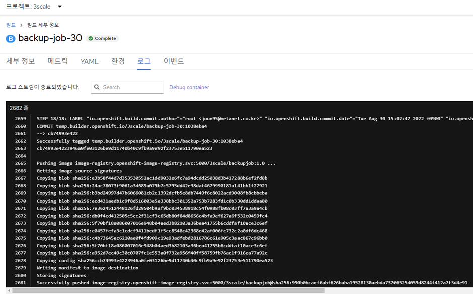 지난 3편에 이어 다음!! OCP 3scale 백업 자동화 고도화하기 - 3편(이미지생성, 권한부여) 백업 자동화 고도화 작업 3탄이다. OCP 3scale 백업 자동화 고도화하기 - 2편(dockerfile, 쉘스크립트) 아래 1편에서