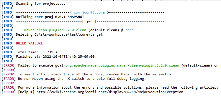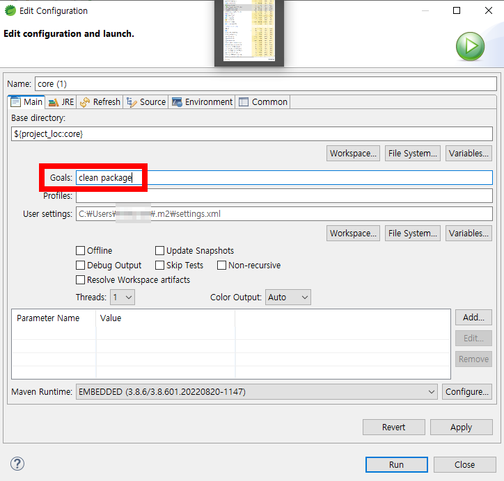 core 프로젝트 우클릭>Run As>Maven build
