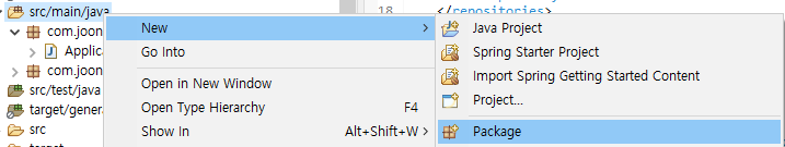 src/main/java 마우스 우클릭>New>Package