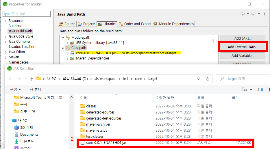 추출한 .jar 를 가져올 수 있도록 설정해줘야 한다.