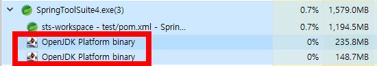 필자의 경우엔 OpenJDK Platform binary 라는 process를 꺼주니 되었다.