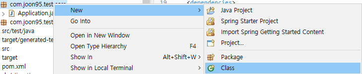 생성한 패키지 마우스 우클릭>New>Class