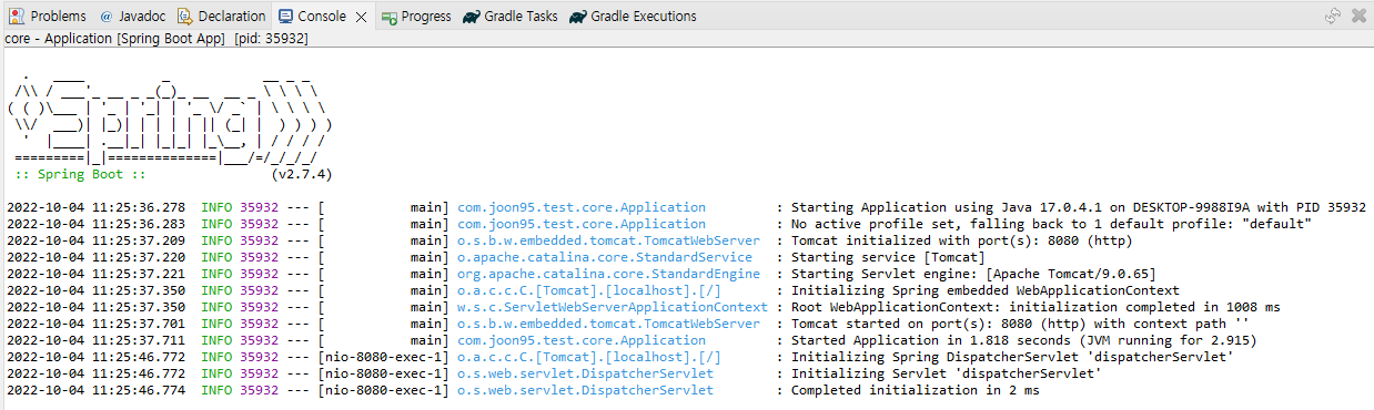 패키지이름은 com.joon95.test.core 로 만들었다.