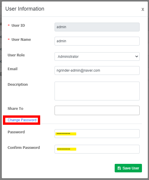기본적으로 패스워드는 id와 동일하게 되어있고 edit 버튼을 통해 패스워드를 변경할 수 있다.